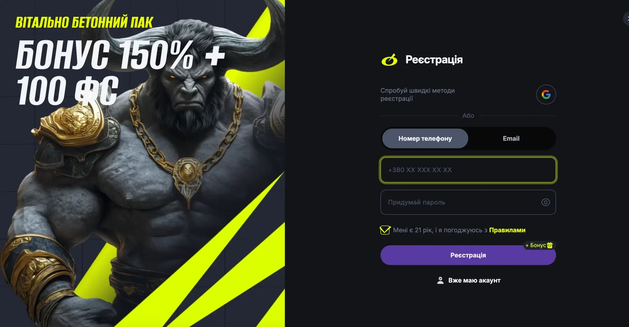 Щоб почати грати на сайті БЕТОН, достатньо кількох кліків. Процес займає не більше 3 хвилин, після чого тобі відкриється доступ до всіх слотів, бонусів і лайв розваг.